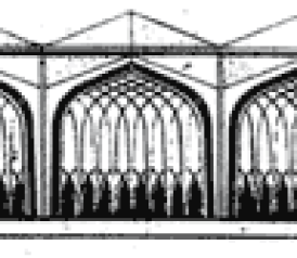 At the base of the towers, Yamasaki used implied pointed arches—derived from the characteristically pointed arches of Islam—as a transition between the wide column spacing below and the dense structural mesh above. (Europe imported pointed arches from Islam during the Middle Ages, and so non-Muslims have come to think of them as innovations of the Gothic period.) Above soared the pure geometry of the towers, swathed in a shimmering skin, which doubled as a structural web—a giant truss. Here Yamasaki was following the Islamic tradition of wrapping a powerful geometric form in a dense filigree, as in the inlaid marble pattern work of the Taj Mahal or the ornate carvings of the courtyard and domes of the Alhambra.