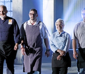 At the outset of the pilot, a hostess gestures at the star appliance as toothily as a Barker’s Beauty flourishes a manicured hand at a washer-dryer: It is a vintage refrigerator of robin’s egg blue, with Cadillac-y swoops to its styling. It seems taller than a standard Sub-Zero BI-42S but not quite so roomy at the TARDIS, and it promises to transport the chefs to the past. Four will enter; one will leave. “Three of them will remain trapped in time,” the hostess says, cheerfully, further claiming that the victor will rank as “the greatest chef in history.” Well, that’s a stretch, I thought. Maybe they would secret steak knives on their persons and assassinate Escoffier?