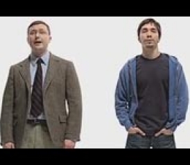 The Spot:Two men stand side by side in front of a featureless, white background. "Hello, I'm a Mac," says the guy on the right (who is much younger and dressed in jeans). "And I'm a PC," says the guy on the left (who wears dorky glasses, ill-fitting khakis, and a jacket and tie). The two men discuss the many advantages of using a Mac and seem to agree that Macs are "better" than PCs. (Click here to see the ads.)