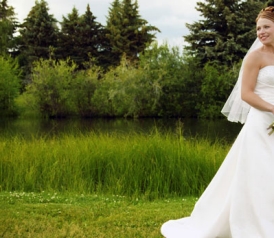 All of which left me in a bind. Spurning strapless styles eliminated most of the looks in that first store. The only dress I liked was a simple floor length gown with a V-neck and a touch of lace. It turned out it was a white bridesmaid’s dress.
