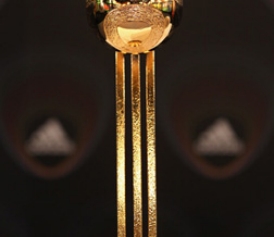 Photograph of World Cup trophy by Cameron Spencer/Getty Images for Adidas.