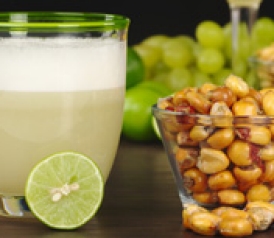 Photograph of Peruvian pisco sour and roasted corn by iStockphoto/Thinkstock.
