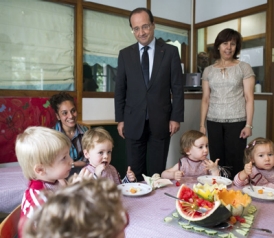 France's President Francois Hollande visits the créche of the Elysee Palace in Paris