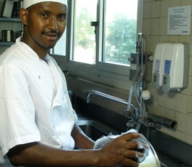 It starts around 8 or 9. My eyes are burning—it’s all the gas in the kitchen, explains Freddie, offering to give me some eyedrops—and I’m blinking and rubbing my eyes furiously as the screen starts to fill up. By now, I know my place. I’m not good enough to direct the line, but I’m getting better at helping it move.