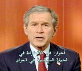 "It's important for the Iraqi people to continue to hear this message," said Bush. "We will not stop until they are free. Saddam Hussein will be gone. … We're not leaving. And not only that; they need to hear the message that we're not leaving after he's gone—until they are ready to run their own government. I hear a lot of talk here about how we're going to impose this leader or that leader. Forget it. From day one, we have said the Iraqi people are capable of running their own country."