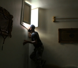 Parents brought in their 4-year-old girl. Hair neatly combed, her eyes closed, she looked asleep in her mother’s arms. The mother’s face, enveloped in a black scarf, was contorted with grief—wild eyes and a silent mouth. The people in the hospital immediately pronounced the girl a "child martyr." “Eighty percent of the patients we get here are civilians,” said a doctor who identified himself as Osram. Back at Saif al-Dawla, the rebels take advantage of a slowdown in the mortaring. In single file, they exit the building and trot along the block.