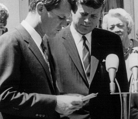 They watched and listened and analyzed the votes as they came in. By 11 or 12, “everyone knew that it would be an all-night thing.” Jackie, who was eight months pregnant, was, she later remembered, “sent up to bed. ... Jack came up and sort of kissed me goodnight—and then all the Kennedy girls came up, and one by one we just sort of hugged each other, and they were all going to wait up all night.” At 3 a.m. a haggard-looking Richard Nixon appeared on television to say it appeared that Kennedy was going to win. Still he refused to concede. At about 4, Jack went to bed. Bobby stayed up. We don’t know when or if his father went to sleep that evening or if he was awake when, just after 6 a.m., a detail of 16 Secret Service agents quietly formed a cordon around the three Kennedy houses.