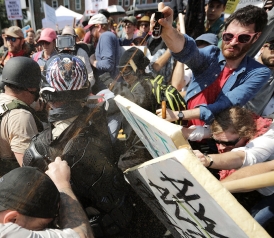 The white supremacists did not blink at violently plowing right through clergy, all of us dressed in full clerical garb. White supremacy is violence. I didn’t see any racial justice protesters with weapons; as for antifa, anything they brought I would only categorize as community defense tools and nothing more. Pretty much everyone I talk to agrees—including most clergy. My strong stance is that the weapon is and was white supremacy, and the white supremacists intentionally brought weapons to instigate violence.