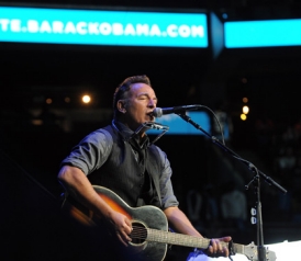 Who knows how many were swayed by the power of music and how many by the power of Bruce fanship (which is usually totally fanatic if it’s there at all)? Who knows how many voters were swayed by the anthemic Bruce ballad that became the Obama campaign’s closing-days theme song: “We Take Care of Our Own.” (It’s a post-Katrina protest song, and the title is kind of ironic or maybe aspirational. Listen to the lyrics that go: