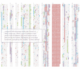 On the Origin of the Species: The Preservation of Favoured Traces This interactive shows Darwin's revisions to On the Origin of the Species over 14 years and six editions. As the interactive plays, the various colors represent additions and amendments to the work. Mousing over allows the user to see what text was added when, including the addition of a key "by the Creator" in the finale of the second edition. (Click the image below to try the interactive.)