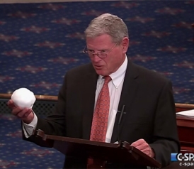 Inhofe, you may remember (to your brain’s infinite regret) is the climate-change-denyingist of all climate change deniers. The apex (or nadir, really) of his career came in March when he—and it makes my synapses ache even to write this—brought a snowball on the floor of the Senate, claiming that it disproved global warming.