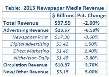 So remember: While a handful of startups like Vox.com might be commanding the attention of media reporters these days, old-line newspapers are still bleeding revenue and cutting staff to the bone. It’s not pretty. And it’s not clear there’s much to be done about it.