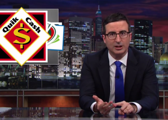 In his latest Last Week Tonight monologue, John Oliver takes on the multibillion-dollar payday-loan industry. These high-interest, unforgiving loans are a huge business in the U.S., where roughly one in five households has resorted to them. (At times, payday loan storefronts have outnumbered those of McDonald’s and Starbucks combined.)