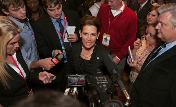 Bachmann leapt in to say she’s fine with waterboarding, too, and complained that, under President Obama, “the ACLU is running the CIA.” (Quick, somebody, tell David Petraeus!) She also made the astonishing claim that when our troops capture terrorists on the battlefield, there are no jails to lock them up in. (Somebody, tell the Army to set up detention centers!)