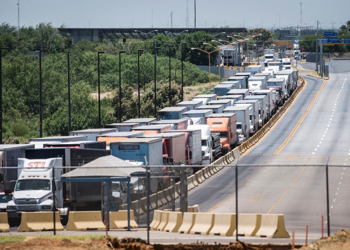 A DHS representative told Slate by email that “on Tuesday, members of two Syrian families, two men, two women and four children, presented themselves at a port of entry in Laredo. They were taken into custody by CBP and turned over to ICE for further processing.”