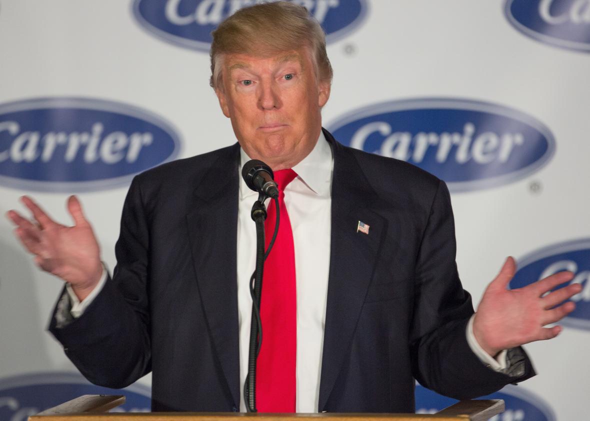 First thing’s first: The next president of the United States might not know what the word euphemism means. More importantly, though, was that Trump now says that when he specifically promised during the campaign to use the threat of stiff tariffs to bring back the Carrier jobs, he wasn’t actually promising to bring back the Carrier jobs, nor did he even intend to try.
