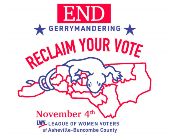The fun run/walk, sponsored by the League of Women Voters of Asheville–Buncombe County, will take place along an especially sinuous segment of the border between Congressional Districts 10 and 11. Asheville is a progressive city, but both districts are currently held by Republicans thanks to gerrymandering. The GOP-dominated legislature essentially divided Asheville in two, lumping some of its residents in CD 10 and the rest in CD 11. Both districts also include many rural conservatives, whose votes outweigh those from progressive Asheville. This practice, known as “cracking,” dilutes Democratic votes to ensure that a Democratic city cannot elect a Democratic representative.
