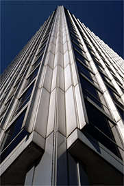 ![]() Hancock Tower (click here) Mies inspired Chicago's two giants, the 100-story Hancock Tower (1969) by Skidmore, Owings & Merrill, and the 110-story Sears Tower (1969-74), also by SOM, which was the tallest building in the world when completed. |